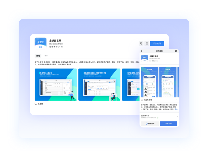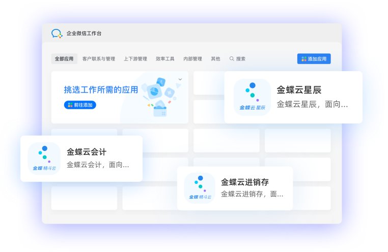 - 多端协同:除了企微客户端,还支持网页端、金蝶云app、PDA和微信小程序;