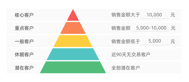 - 20+指标数据帮助企业深度认知客户详情,可根据对各层次客户不同关注点及运营侧重点配置关键指标,客户经营情况一目了然